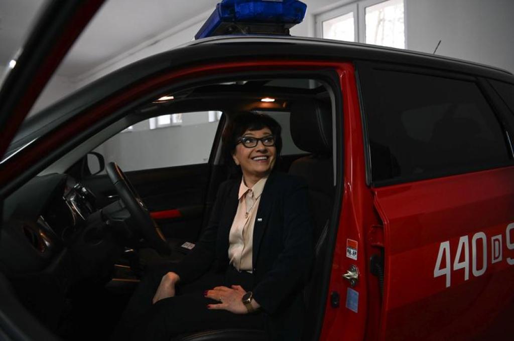 Marszałek Sejmu na uroczystości przekazania nowych samochodów pożarniczych dla jednostki Państwowej Straży Pożarnej