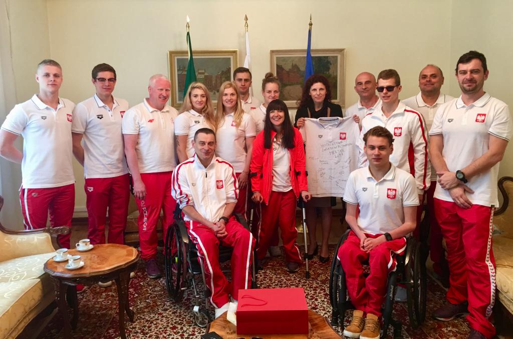 Polska kadra odwiedziła dzisiaj Ambasadę RP w Meksyku, spotykając się z Ambasador Beatą Wojną. Biorąca udział w odbywających się w Meksyku Mistrzostwach Świata w pływaniu osób z niepełnosprawnościami polska kadra odwiedziła dziś Ambasadę RP w Meksyku.