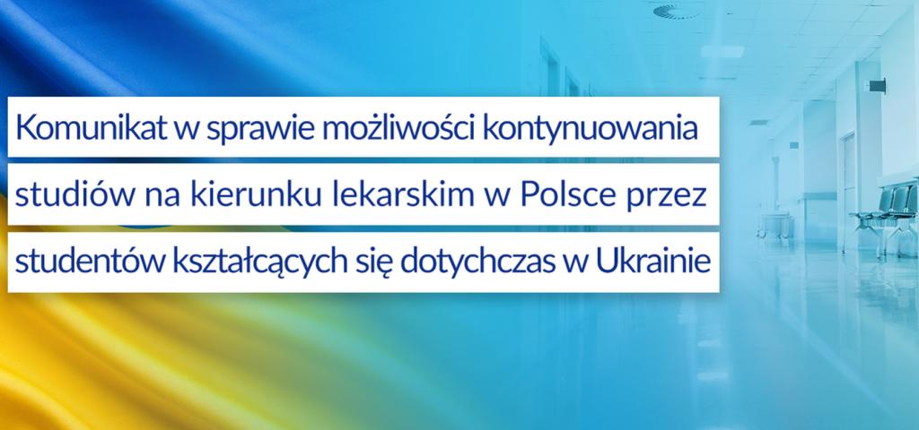 Możliwość kontynuowania studiów na kierunku lekarskim w Polsce przez studentów kształcących się dotychczas w Ukrainie / Щодо можливості продовження навчання в польському ВНЗ на медичному напрямку