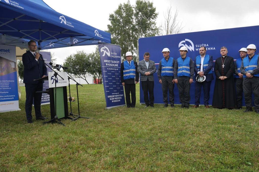Uroczystość zorganizowano na placu budowy przed Oddziałem Zewnętrznym Aresztu Śledczego w Koszalinie. Do grudnia 2024 r. mają tu „wyrosnąć” dwa pawilony zakwaterowania osadzonych - po 260 miejsc każdy (w zakładzie karnym typu zamkniętego) z placami spacerowymi i boiskiem.