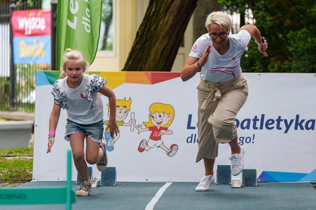 W miasteczku Polskiego Związku Lekkiej Atletyki dzieci mogły znaleźć specjalnie przygotowaną bieżnię, na której mogły się zmierzyć ze specjalistką biegu przez płotki, olimpijką Anną Jesień.