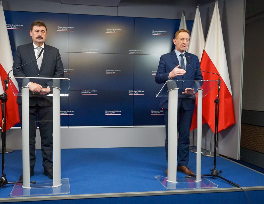 11.04.2023 r. odbył się briefing prasowy ministra rolnictwa i rozwoju wsi Roberta Telusa i sekretarza stanu Ryszarda Bartosika podsumowujący dzisiejsze obrady sztabu kryzysowego, który odbywał się w KPRM.