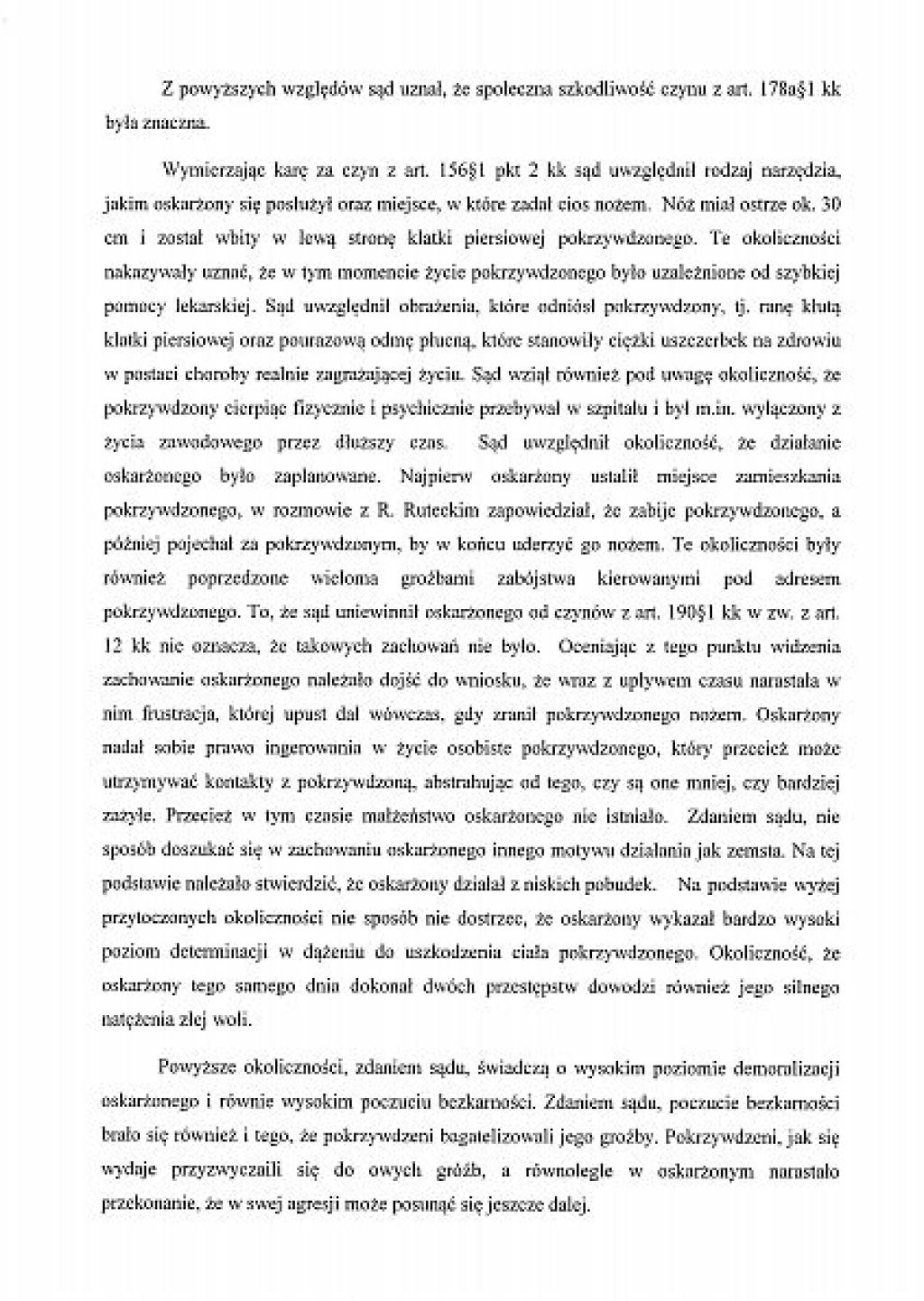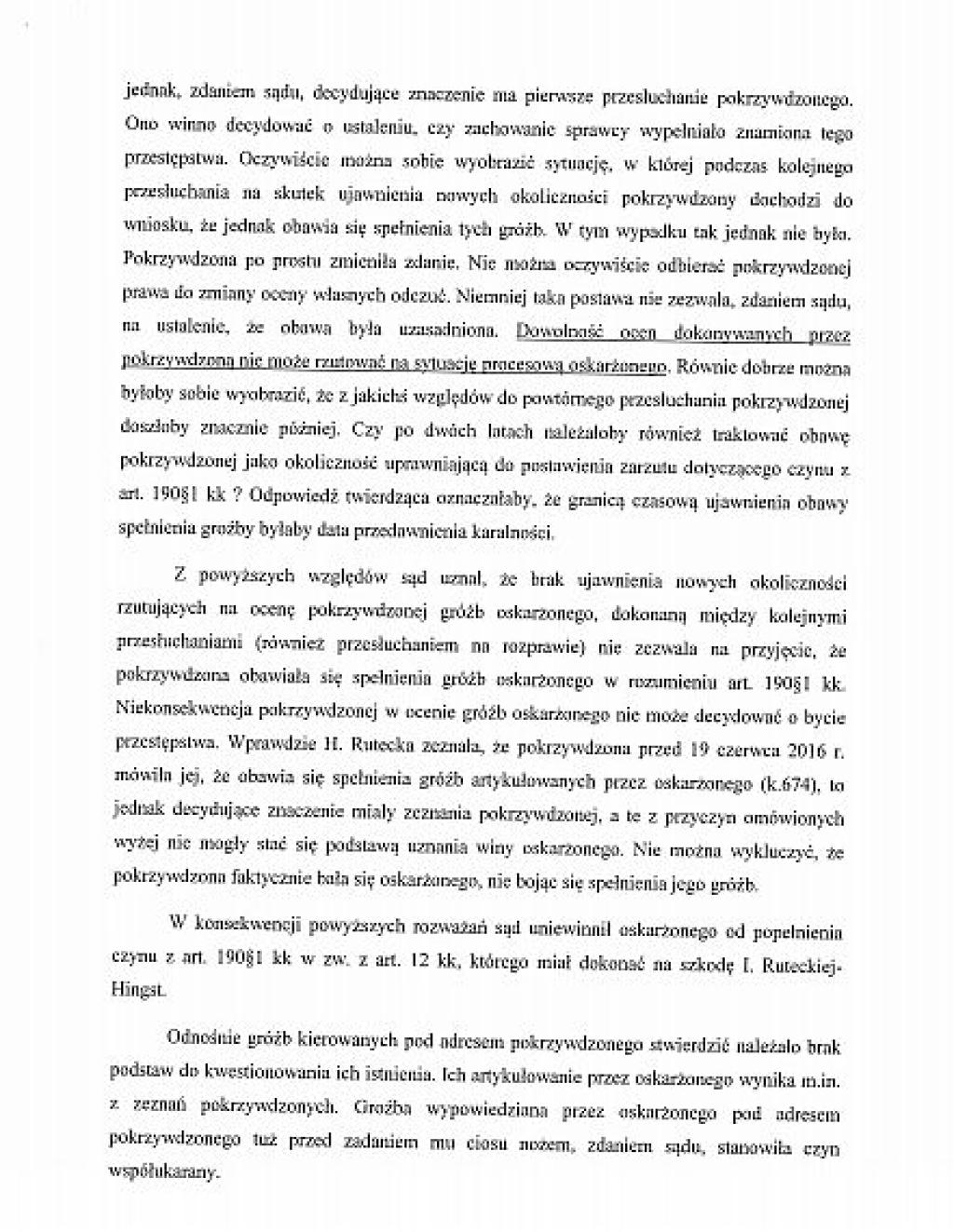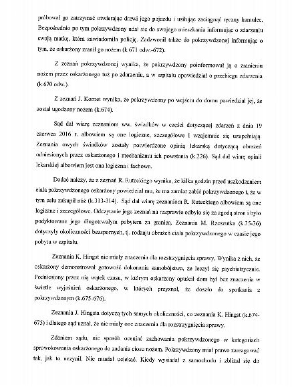Prezentujemy, wraz z niniejszym artykułem, pełny tekst uzasadnienia wyroku, jaki zapadł przed Sądem Rejonowym w Miastku. Sędzia Bogdan Kostyk uznał za wiarygodnego Karola K., który nie pamiętał przed sądem, pod jakimi zeznaniami podpisał się na policji. A były to zupełnie inne zeznania niż skazanego Krzysztofa Hingsta, którego biegły psychiatra uznał za wiarygodnego.