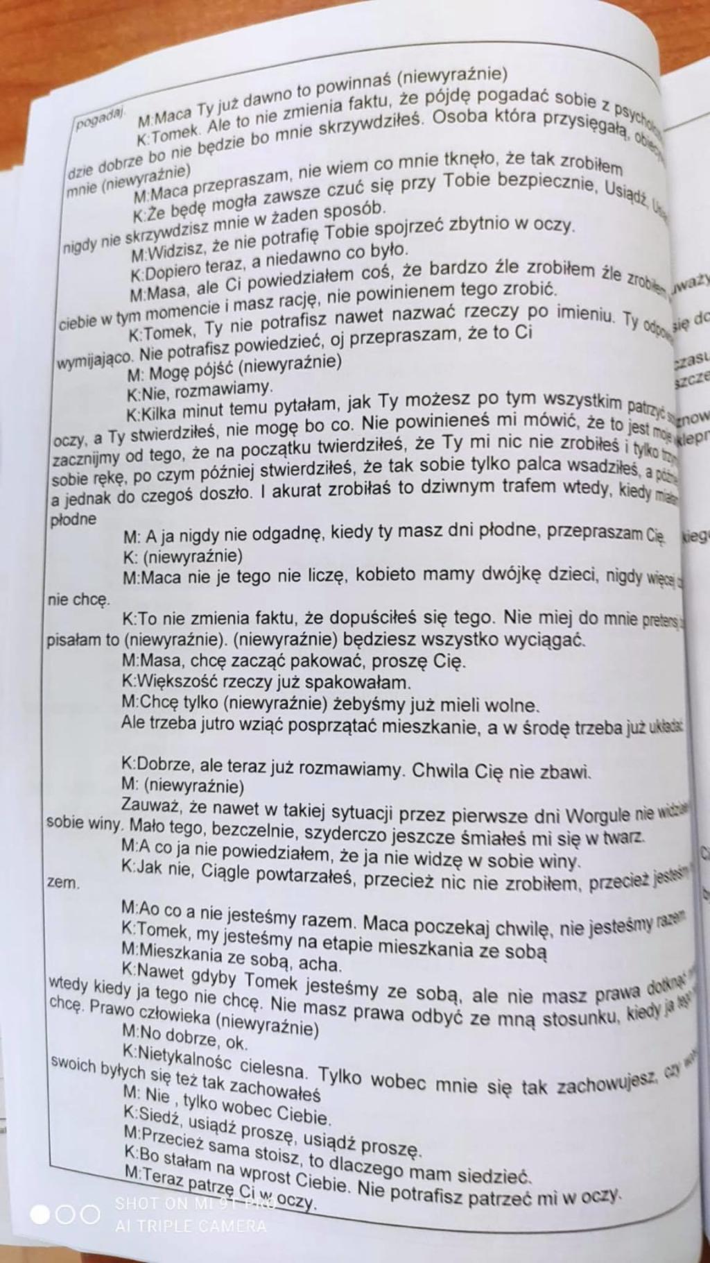 Ale Marcela go dręczyła, by usiadł z nią i rozmawiał. Wiemy to, bo kobieta sama tę rozmowę nagrała. Stenogram z tej rozmowy dołączamy do niniejszego tekstu.
