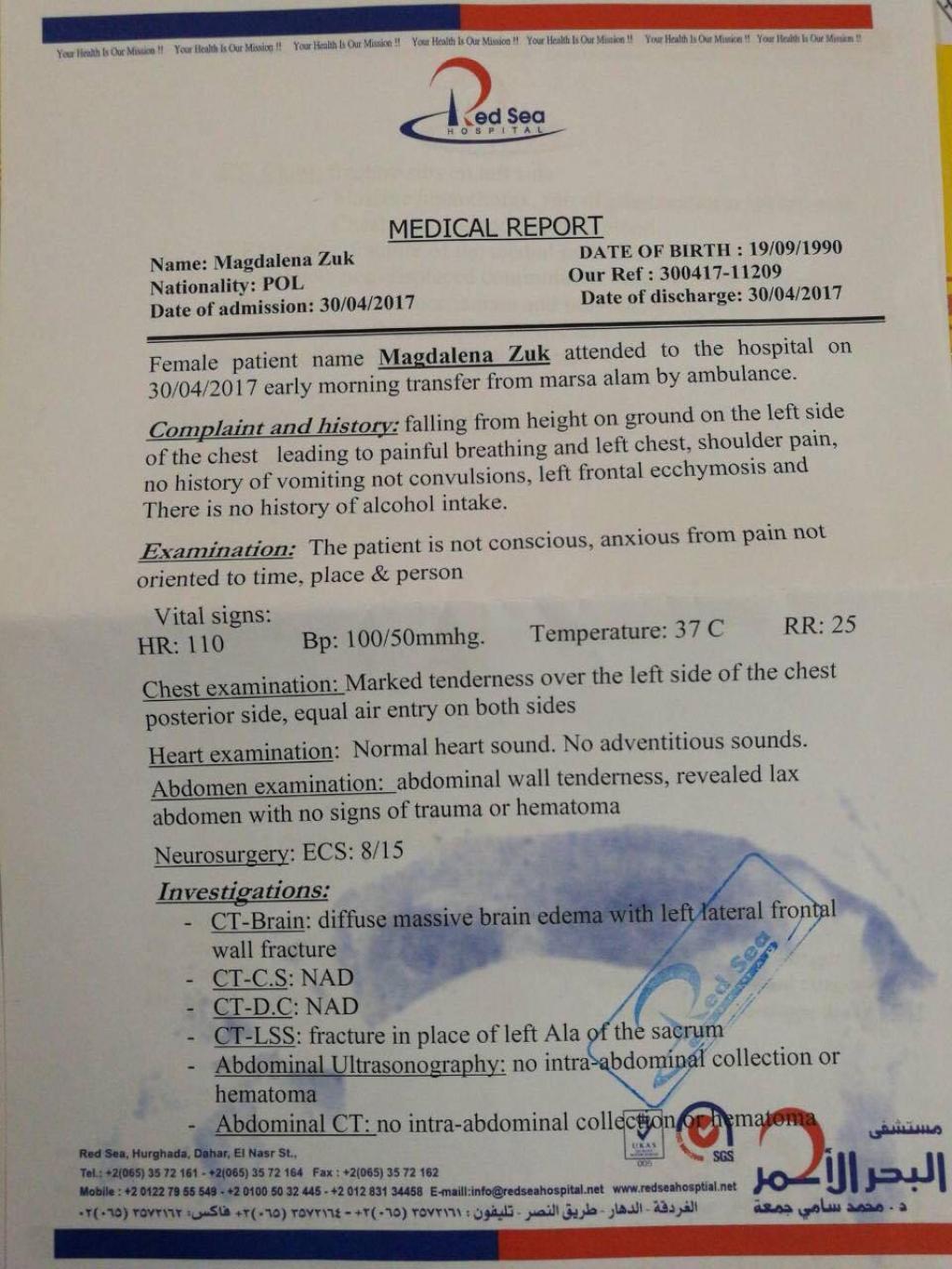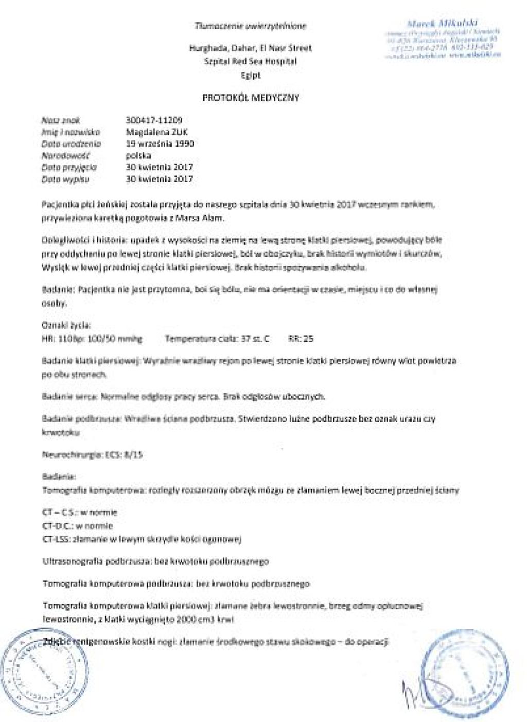 Krzysztof Rutkowski ujawnił też fotokopię paszportu Magdaleny Żuk, którą jego agent uzyskał na terenie Egiptu, potwierdzając wiarygodność uzyskiwanych dokumentów medycznych.