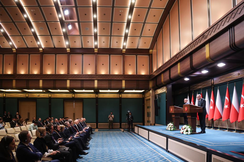 - Potwierdziliśmy dziś, że przyjaźń polsko-turecka oraz bliska współpraca w dziedzinie obronności, gospodarki i rozwiązywania geopolitycznych dylematów, ma bardzo silne i trwałe fundamenty – mówił Premier Donald Tusk podczas wspólnego oświadczenia z Prezydentem Recepem Tayyipem Erdoğanem.