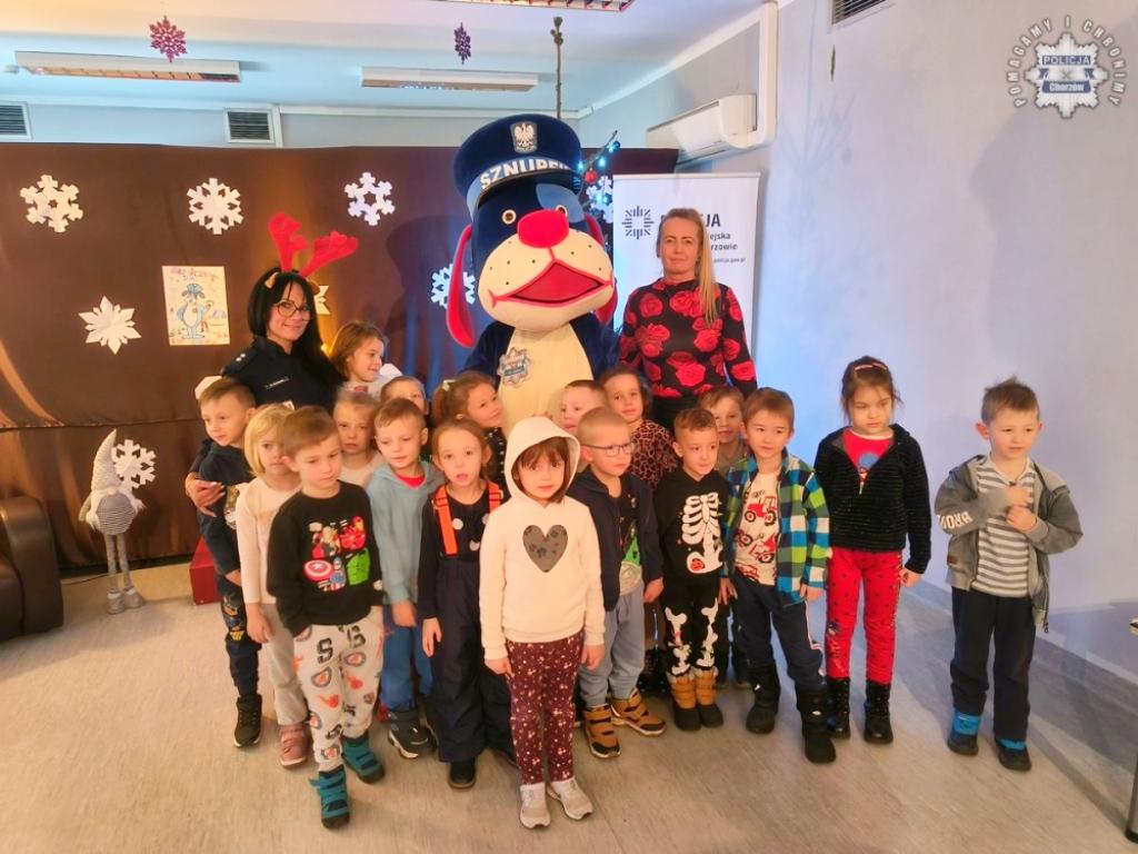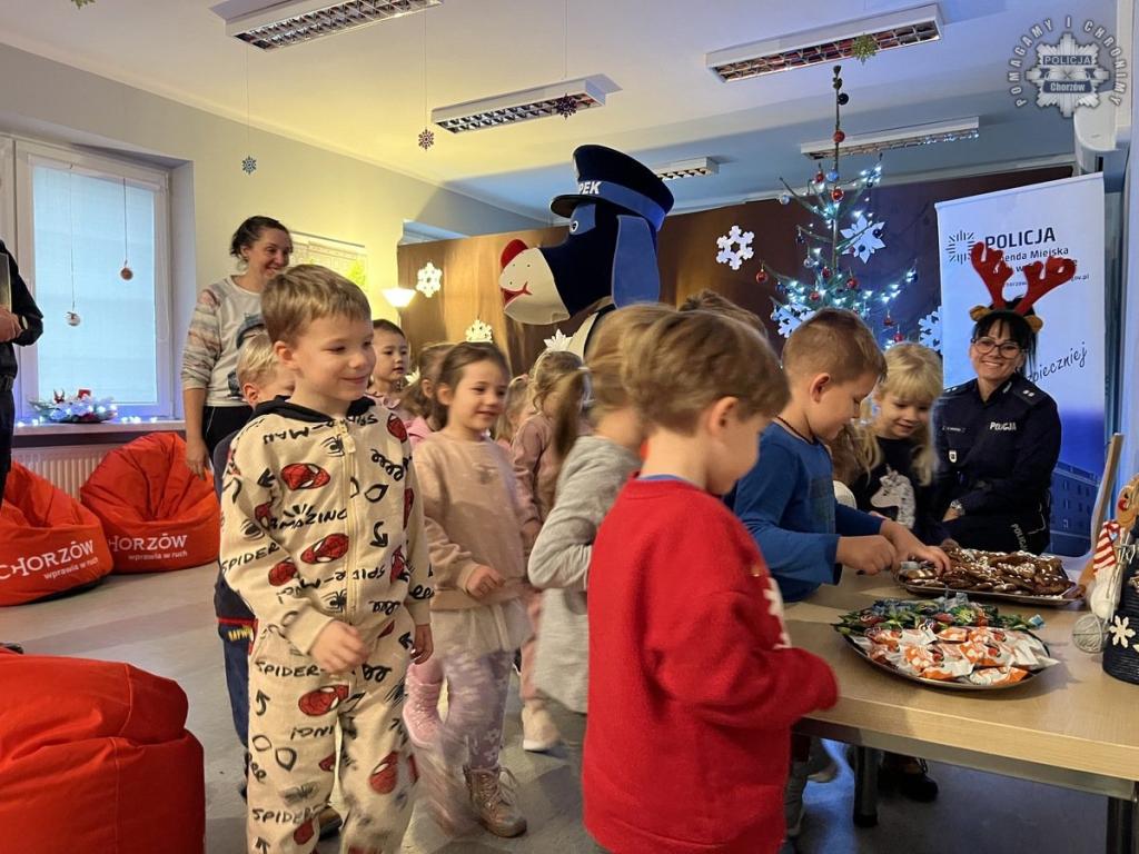 Mury chorzowskiej komendy odwiedziły dzieci z kilku przedszkoli. Najmłodsi w świątecznej scenerii wysłuchali opowiadań czytanych przez mundurowych. Nie zabrakło choinki, pierniczków oraz policyjnej maskotki Sznupka.