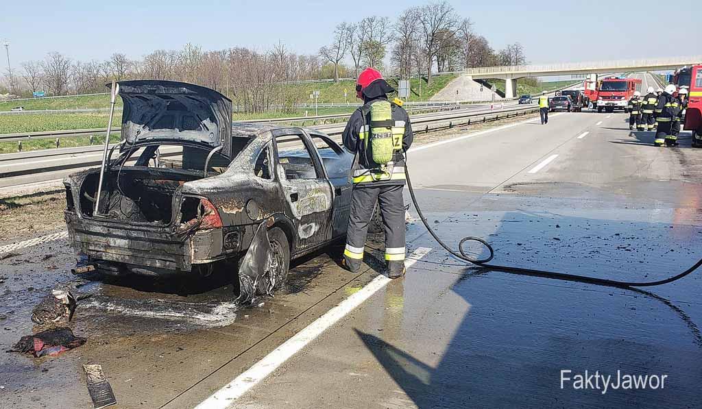 Na miejsce udały się zastępy z PSP JRG w Jaworze oraz OSP Wądroże Wielki i Budziszów. Strażacy ugasili płonące auto i zabezpieczyli miejsce zdarzenia. W oplu podróżowały dwie osoby, które zostały przewiezione do szpitala. Poszkodowana i hospitalizowana została także kierująca busem kobieta. W wyniku zderzenia potrącony bus uderzył w trzeci pojazd. Przez kilkadziesiąt minut ruch na A4 w kierunku Wrocławia był wstrzymany. Przyczyny zdarzenia bada policja.